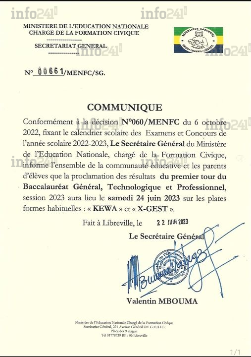 Baccalauréat 2023 : Les résultats du premier tour au Gabon seront connus ce samedi 24 juin © 2023 D.R./Info241