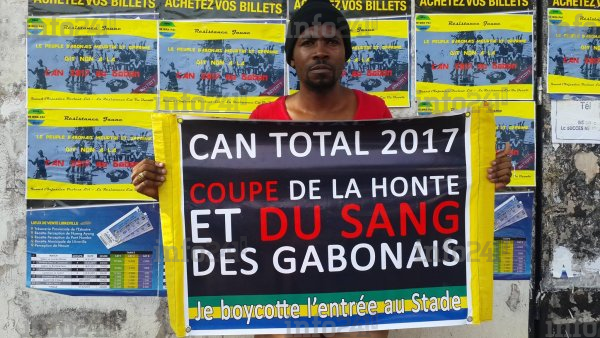 Arpentant avec leurs banderoles les artères de Libreville où se jouait le deuxième match de poule des Panthères du Gabon contre les Etalons du Burkina-Faso, avec des banderoles où on pouvait lire : ’’La jeunesse gabonaise est à 100% avec Jean Ping’’ CAN Total 2017 Coupe de la Honte et du Sang des Gabonais, ’’Les Gabonais ont faim mais on leur sert le divertissement’’, ’’L’école gabonaise est en grève, les salles de classe sont vides et on corrompt les élèves pour remplir les stades’’, ’’Football d’accord, mais école d’abord’’.