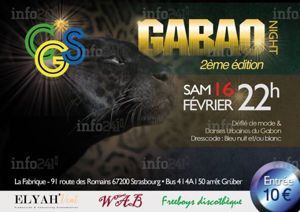 Si vous résidez ou êtes de passage en France, alors ne manquez surtout pas ce samedi la soirée Gabao night, organisée par le Cercle des Gabonais de Strasbourg (CGS). Après le succès de la première édition, la soirée socio-culturelle gabonaise outre son coté festif permettra à cette association de ressortissants gabonais de financer des projets socio-éducatifs et de formation au Gabon, promet le communiqué de presse du CGS parvenu à la rédaction d’Info241.