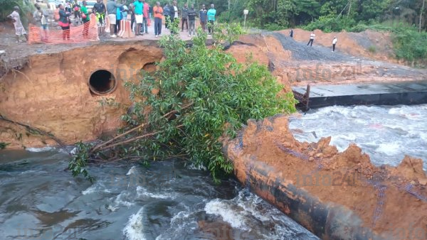 Les automobilistes sont confrontés à rude épreuve depuis ce samedi matin. Et pour cause, la route nationale est désormais coupée en deux à une trentaine de kilomètres de Libreville à quelques encablures de la commune de Ntoum. Une vieille buse aurait visiblement cédé sous le poids de la montée des eaux et provoqué l’effondrement de la voie.