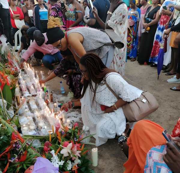 Depuis le jour du tragique naufrage du 9 mars, les gabonais se recueillent quotidiennement au port môle de Libreville en hommage au victime. Un mur de photos, bougies, fleurs a été érigé pour soutenir les familles de victimes qui attendent depuis plusieurs jours sur place des nouvelles des recherches en mer effectuées par les autorités gabonaises. Un mur d’hommage qui a vu passer artistes, politiciens, membres de la société civile, ainsi que des anonymes.