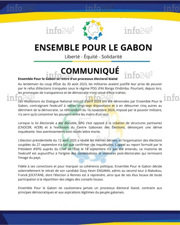 En annonçant son retrait « par principe », l’EPG cherche à se présenter en victime d’un système électoral biaisé dont pourtant il ne fait pas les frais. Mais derrière ce discours, beaucoup y voient une nouvelle fuite en avant de Bilie By Nze, qualifié par ses adversaires de « perroquet du régime Bongo » dont il fut longtemps un pilier.