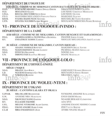 Dans l’Ogooué-Ivindo, 6 candidats seront en lice dans deux sièges : 1er siège de la commune de Mekambo (cantons Bengoué et Sassamongo) et celui du 3e siège de Mekambo (canton Djouah). Dans l’Ogooué-Lolo, seul le siège de l’Offoué-Onoye est concerné avec aux prises 3 candidats et leur suppléant. Enfin, même son de cloche dans le Woleu-Ntem où 7 candidats tenteront de ravir les voix du 2e siège du département de l’Okano (cantons Lalara et Okala).