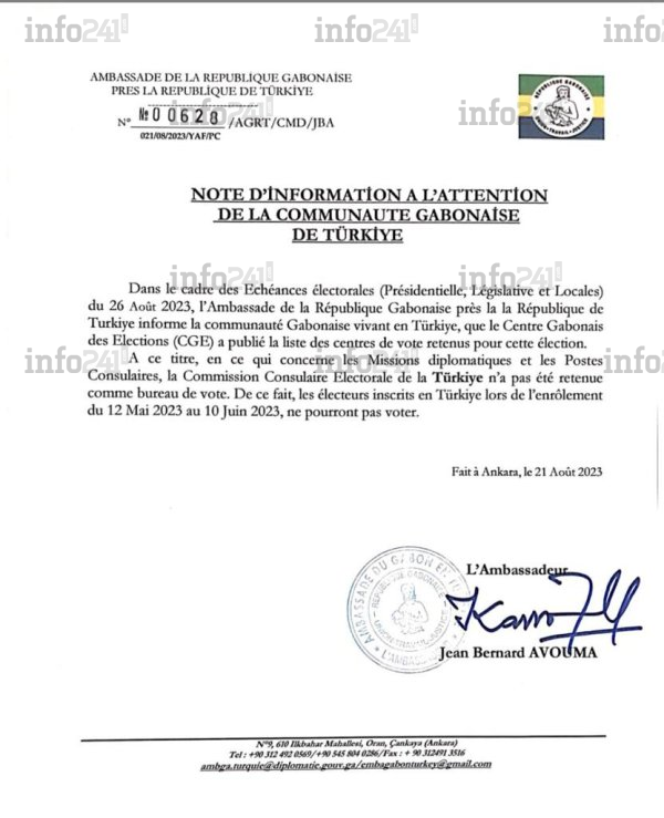 L’annonce de la suppression du vote en Turquie officialisée par l’ambassade gabonaise ce lundi