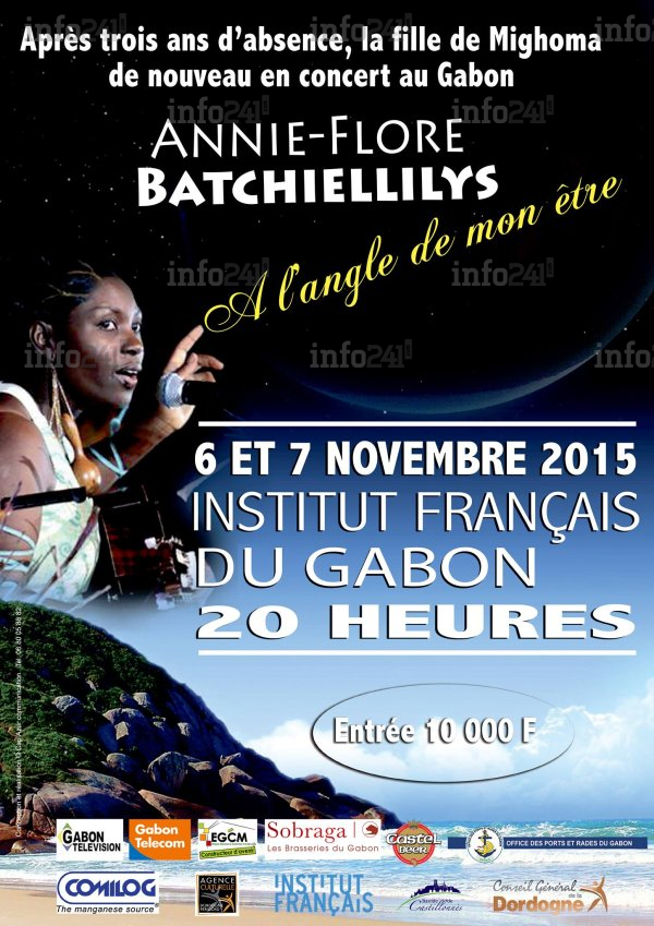 Alors que son 8e album « A l’angle de mon être » est très attendu dans les bacs, la chanteuse gabonaise, Annie Flore Batchiellilys sera sur scène début novembre pour deux concerts événements les 6 et 7 novembre à l’Institut français de Libreville. Un moment donc pour gratifier ses fans de son talent et donner suite aux projets que son départ pour l’étranger en 2012 avait dès lors, laissé en suspens.