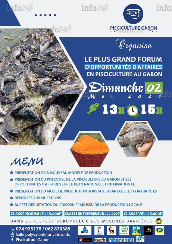 Interrogé par la rédaction d’Info241, Prince Cédric Evouna responsable de Pisciculture Gabon qui organise l’évènement économique, précise que ce forum d’affaires se déroulera sous forme de séminaire. « Il aura pour objectif de mettre en avant le potentiel et les opportunités d’affaires que nous offre ce secteur sur le plan national et international. Mais aussi comment allons nous restructurer cette industrie en interne, produire des poissons de qualité à moindre coût pour concurrencer ceux importé », a-t-il indiqué.