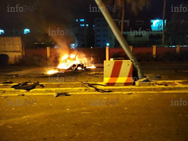 Un accident de la circulation d’une rare violence est survenu hier soir dans la capitale gabonaise peu après 21h. Deux véhicules sont entrés en collision sur le front de mer entre le pont de Guégué et le siège du Conseil économique social et environnemental (CESE). L’un des deux véhicules a pris feu sous la violence du choc. Plusieurs victimes sont à déplorer dans la conductrice du second véhicule qui aurait trouvé la mort sur-le-champ.