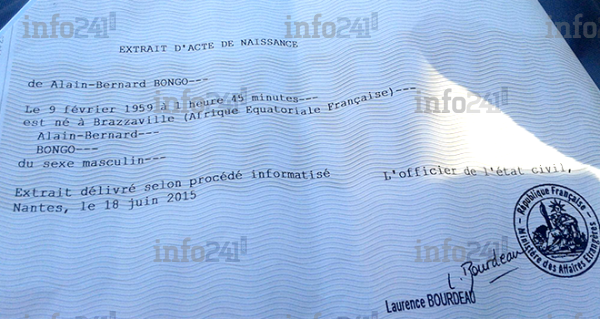 Sauf que le président Gabonais n’a jamais utilisé cet acte dans l’ensemble de ses démarches administratives et politques au Gabon. Lui qui a été longtemps député de Bongoville, s’est toujours présenté avec un acte de naissance différent. Le plus accablant est celui qu’il a glissé dans son dossier de candidature à l’élection présidentielle d’Août 2009, établi à la mairie du 3e arrondissement, en parfaite violation des procédures en la matière en république Gabonaise.