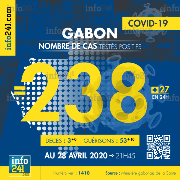 Malgré l’allègement du confinement du Grand Libreville hier, l’épidémie de coronavirus au Gabon continue sa hausse vertigineuse. Hier, les autorités ont déploré 35 nouveaux cas et 13 guérisons, ce mardi les chiffres sont tout aussi élevés. Ce mardi soir, ce sont 27 nouveaux cas et 10 nouvelles guérisons qui ont été dénombrés officiellement. Ce qui porte le bilan de l’épidémie dans le pays à 238 cas positifs au Covid-19 contre 53 guérisons.
