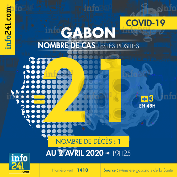 Le Gabon continue d’être frappé par la pandémie du coronavirus. Ce jeudi, les autorités sanitaires ont enregistré 3 nouveaux cas dont un à l’intérieur du pays. Ce qui porte à 21, le nombre de personnes contaminées par le virus depuis le 12 mars. Seule première bonne nouvelle, le patient zéro est déclaré guéri de la maladie après 21 jours d’hospitalisation.