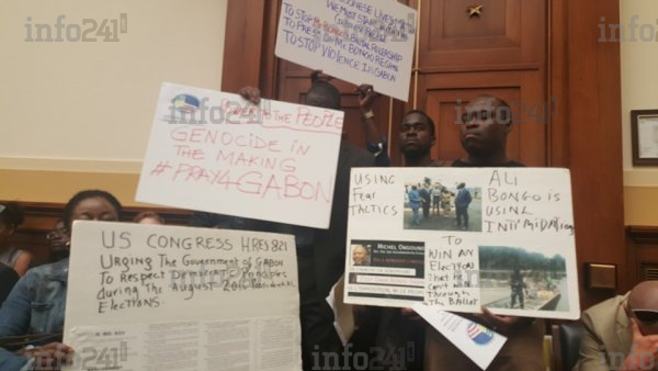 Une dizaine de manifestants gabonais ont envahi mercredi une réunion du Congrès américain en charge des affaires africaines, pour l’interpeller sur les violences post-électorales qui ont coûté la vie à plusieurs gabonais notamment à Libreville, Port-Gentil et Oyem.