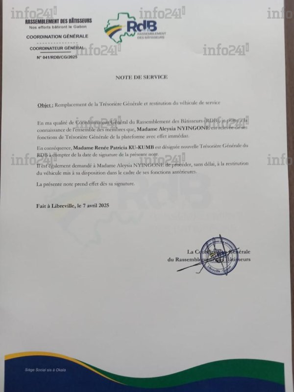 Un vent de discorde souffle au sein du Rassemblement des bâtisseurs (RdB), la plateforme politique chargée de soutenir la candidature du président de la transition, Brice Clotaire Oligui Nguema. Accusée de détournement de fonds et démise de ses fonctions ce lundi, la trésorière générale du mouvement, Aleysia Nyingone, contre-attaque publiquement et met en cause le coordinateur général, Anges Kevin Nzigou, dans une vidéo qui fait le tour des réseaux sociaux.