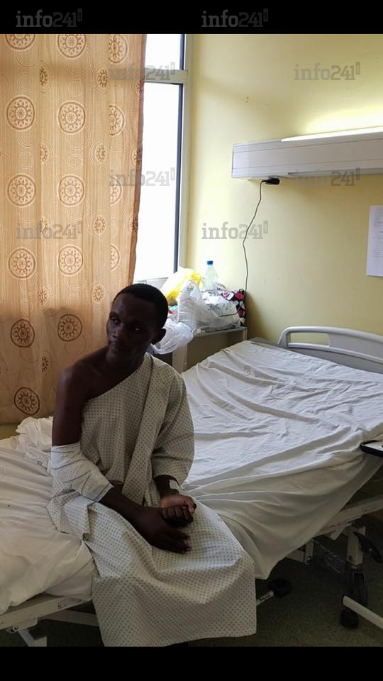 Une des victimes de l’incident, ici à l’hôpital militaire de Libreville