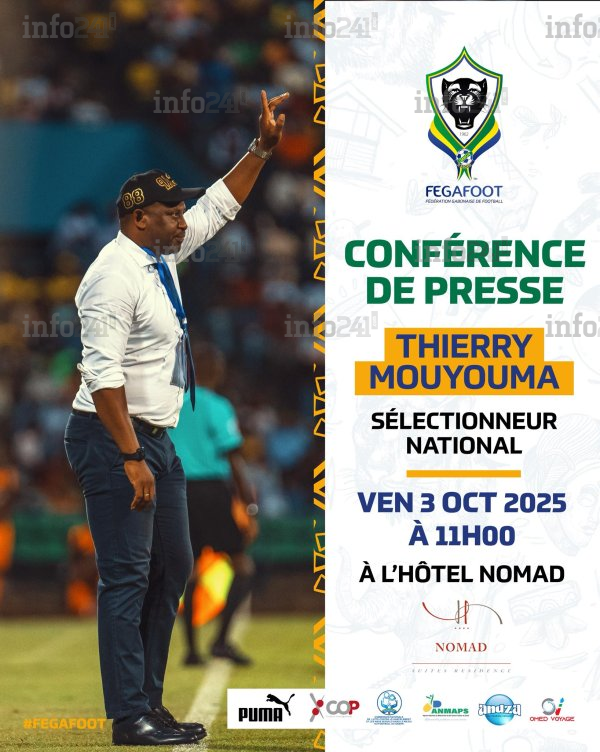 En prélude aux 9e et 10e journées des éliminatoires du Mondial 2026, le sélectionneur national du Gabon, Thierry Mouyouma, animera une conférence de presse ce vendredi, a indiqué ce mardi la Fegafoot. À cette occasion, il dévoilera la liste des Panthères retenues pour les deux ultimes rencontres de la phase de groupes, prévues les 10 et 14 octobre prochains. Deux rendez-vous capitaux qui détermineront l’avenir du Gabon dans la compétition, avant d’éventuels barrages.