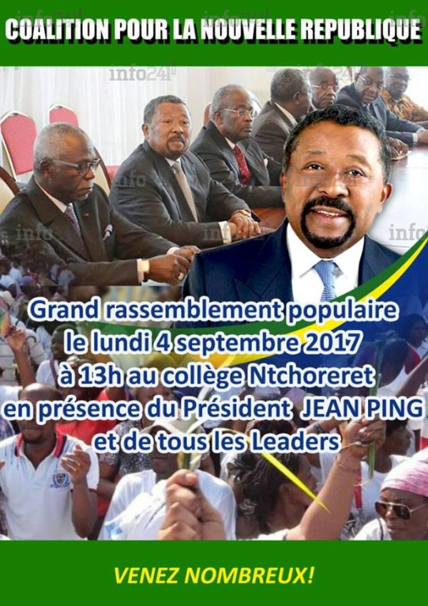 A la suite de la réunion des présidents et de la conférence de presse de la Coalition, Jean Ping avait déclaré sur sa page officielle Facebook ce qui suit : « Gabonaises, Gabonais, Chers concitoyens, Je vous invite à participer, lundi 04 septembre au grand rassemblement pour la nouvelle République à Libreville. En présence de tous les leaders politiques et de la société civile. Manifester est un droit constitutionnel inaliénable. Nous ne reculerons pas. Nous irons jusqu’au bout ».