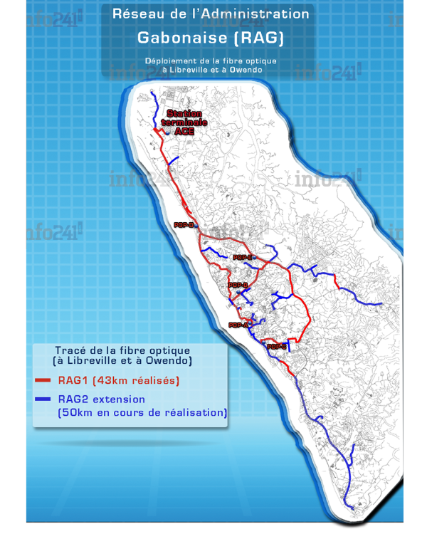 Le projet gouvernemental Réseau de l’administration Gabonaise (RAG), qui consiste à bâtir un réseau de télécommunications destiné à améliorer le service public et à partager l’information administrative. Il s’agit d’une infrastructure haut débit, fiable et sécurisée, qui repose sur des liaisons en fibre optique et en faisceaux hertziens sur l’ensemble du territoire national.