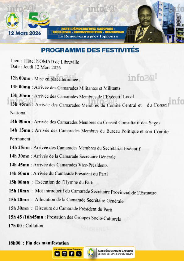 C’est dans ce climat particulièrement électrique que les militants sont invités à se rassembler autour du thème choisi pour cette année : « Résilience, reconstruction, renouveau » . Un triptyque qui résume parfaitement le chemin de croix d’une formation en quête de survie politique. À la suite de cet événement dans la province de l’Estuaire, les commémorations se poursuivront dans les différents chefs-lieux de provinces et de départements les 28 et 29 mars prochains, faisant office d’ultime test de mobilisation pour un parti en pleine convalescence.