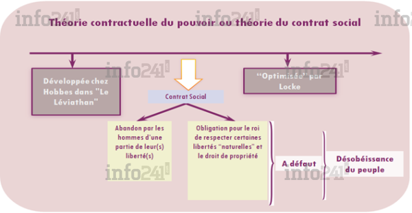 Cette contractualisation consiste, pour les sujets, d’abandonner au contrat social une partie de leurs libertés, au profit du Roi qui, en contrepartie, est tenu de respecter certaines libertés naturelles des individus et le droit de propriété pour chacun , sinon, les sujets sont autorisés à ne pas obéir le Roi.