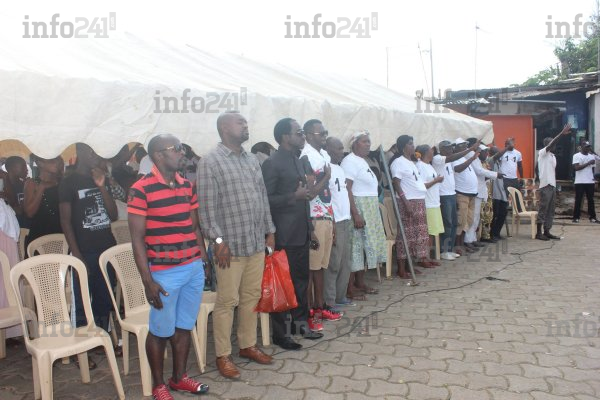Les jeunes membres du mouvement chantant la Concorde, hymne national du Gabon