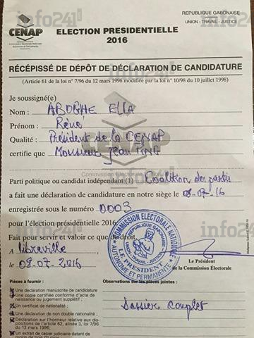 D’autres sons de cloche pessimistes n’ont pas tardé, selon M. Nong, « En fait, Jean Ping s’est plié aux ’’nouvelles exigences’’ illégales de la CENAP, notamment la curieuse présence du certificat de nationalité au lieu de l’acte de naissance et la déclaration de non double nationalité, alors que la loi du code électoral ne l’exige pas.. Si ceux sont là, les pièces à fournir pour être candidat à la présidence gabonaise, considérez qu’Ali Bongo sera bien évidemment candidat, la CENAP validera son dossier malgré la contestation de la coalition des membres de l’opposition  ».