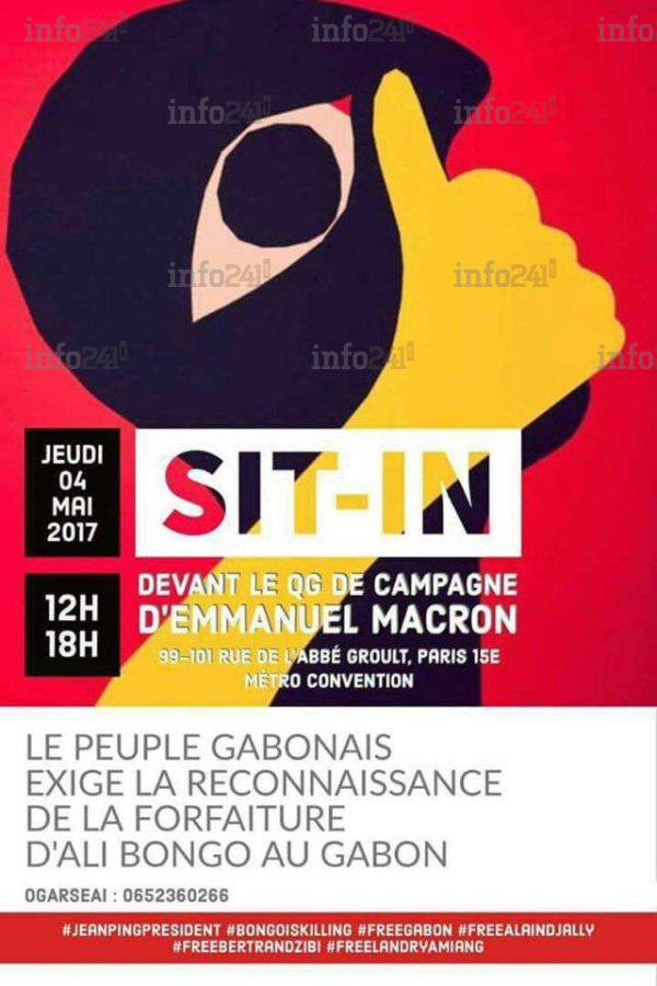 La diaspora gabonaise, qui est toujours vent débout pour revendiquer la vérité des urnes lors de la dernière élection présidentielle du 27 aout 2016, s’invite à l’élection présidentielle française. Cette manifestation est réalisée selon le comité d’organisation avec pour but d’inviter « le candidat Emmanuel Macron à œuvrer aux côtés du peuple gabonais, pour le respect de sa souveraineté exprimée le 27 août 2016 au cours de l’élection présidentielle, pour la libération des prisonniers politiques, pour l’ouverture d’une enquête internationale sur les crimes commis durant cette période et pour l’établissement d’un nouveau partenariat entre la France et le Gabon au bénéfice des deux peuples ».