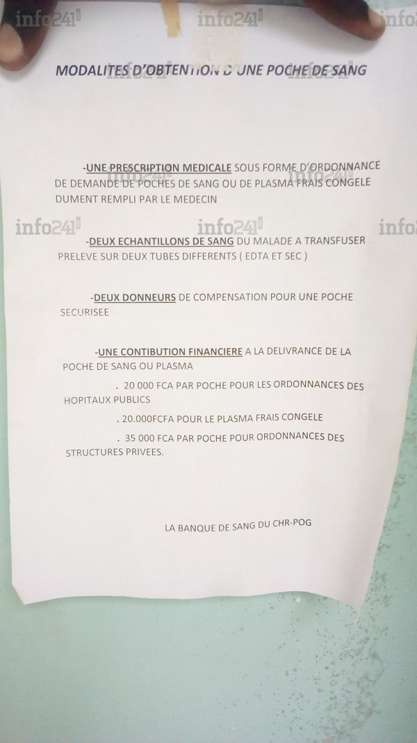 Dans une note d’information antidatée et non cachetée indiquant le mode d’obtention de poches de sang, plusieurs parents la perçoive comme une arnaque financière. « C’est ahurissant de voir dans notre pays que quelqu’un se lève et fixe ses prix et tout le monde est là on regarde », regrette Guy-Roger Mandoungou, de passage pour sa deuxième dose de vaccin Covid-19 dans cette structure sanitaire.