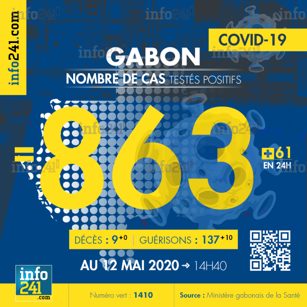Les autorités sanitaires gabonaises ont organisé ce mardi une conférence de presse toute spéciale à l’occasion des deux mois de l’existence de l’épidémie dans le pays. On a pu ainsi avoir des données plus détaillées de la présence du virus dans les 5 provinces du pays. Pour la journée de mardi, ce sont 61 nouveaux cas positifs au Covid-19 qui ont été enregistrés ainsi que 10 nouvelles guérisons. Ce qui porte le bilan à 863 cas confirmés, 9 morts et 137 guérisons. Ces cas sont repartis dans 9 villes.