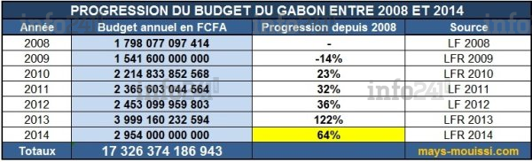Progression du budget du Gabon entre 2008 et 2014