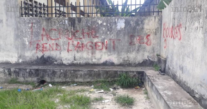 Brice Laccruche Alihanga reverrait-il de mettre la main sur la manne du budget gabonais réservée aux boursiers du supérieur ? Oui, pensent les auteurs de ce tag retrouvé ce mardi matin sur la devanture du lycée public Georges Mabiniath d’Akébé. Le tag écrit à la bombe rouge est sans équivoque : « Laccruche rend l’argent des bourses ». En cause, la reforme actuelle des bourses dont ce franco-gabonais accusé d’être le véritable « président » du Gabon à la suite de l’indisponibilité d’Ali Bongo. Il serait donc l’instigateur de cette reforme tant décriée ?
