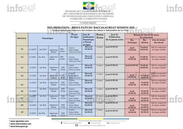 Après un examen sous le signe de la pandémie de coronavirus, les délibérations du premier tour du baccalauréat gabonais sont attendues pour ce mercredi à 10h00 dans les différents centre d’examen du pays. C’est ce que souligne une note officielle de la direction du baccalauréat, parvenue ce mardi soir à la rédaction d’Info241.
