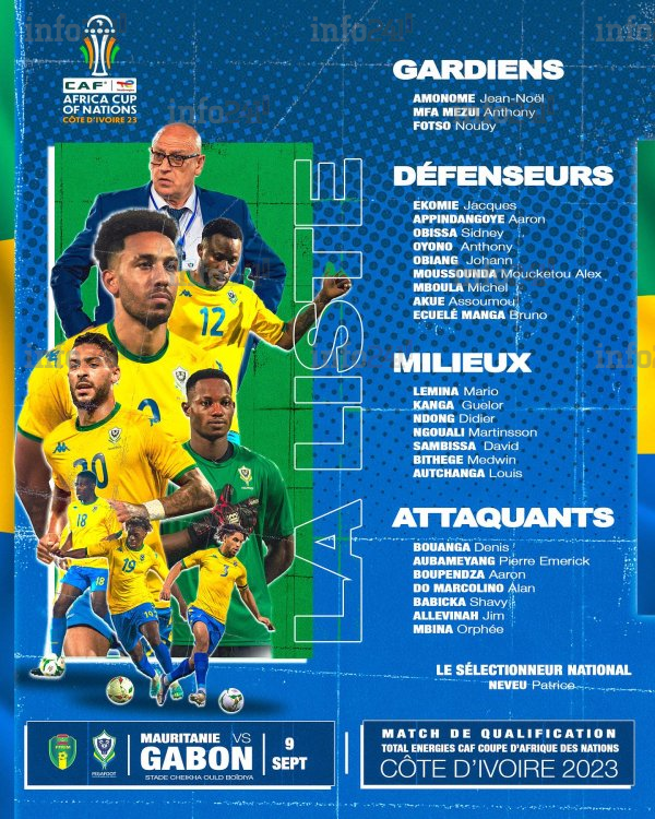 Le Gabon recalé 3e du groupe I de ses éliminatoires, va devoir défier le 9 septembre prochain les seconds de ce groupe : les Mourabitounes de Mauritanie. Si tout se jouera lors de cette ultime journée à haut risque pour les Panthères du Gabon à Nouakchott, Patrice Neveu prépare ses armes pour arracher une qualification du Gabon. Une mission qui passe par la convocation des 26 joueurs sélectionnés pour défendre les couleurs du pays.