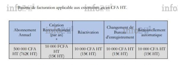 Mais ce n’est pas tout. Pour ne rien arranger, l’Aninf a décidé en parallèle de cette opération, de la fin de la gratuité des noms de domaine en .ga. Une décision lourde de conséquences pour la popularité de ce TLD gabonais. Désormais pour s’offrir le .ga via les nouveaux registrars homologués par l’Aninf, il faut débourser entre 12 et 22 000 FCFA. Un prix jugé très prohibitif pour les clients gabonais qui avaient adopté déjà ce nom de domaine vert jeune bleu, prisé en partie en raison de son coût gratuit ou peu onéreux.