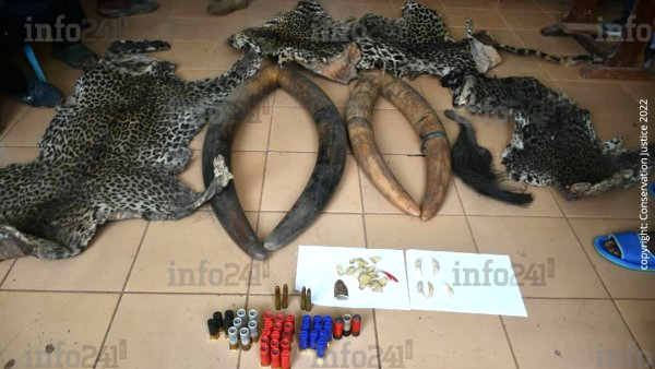 Oyem : 4 braconniers présumés arrêtés avec des pointes d’ivoire et des peaux de panthère © 2022 D.R./Info241