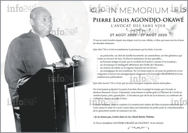 Le jeudi 27 août 2020 marquait le 15ème anniversaire de la disparition de l’avocat gabonais Pierre-Louis Agondjo-Okawe (1936-2005). Occasion pour la rédaction d’Info241 de retracer la vie de ce monument indéniable de la justice et de la politique gabonaise mais aussi le fervent défenseur des droits humains et un opposant farouche aux politiques mises en place par les feux présidents Léon Mba et Omar Bongo.