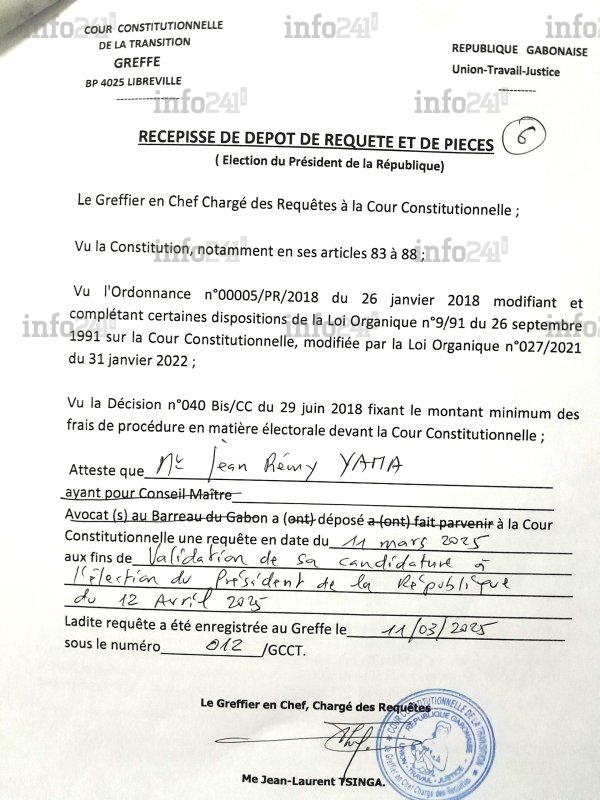 Les soutiens de celui qui se positionne comme le visage du vrai changement pour le Gabon peuvent jubiler : Jean remy Yama a déposé son recours devant la cour constitutionnelle contre le rejet de sa candidature par la commission électorale dirigée par le ministre de l’Intérieur. Ce mardi, il a pu régulariser son dossier en y joignant une photocopie conforme de l’acte de naissance de sa mère qui faisait défaut.