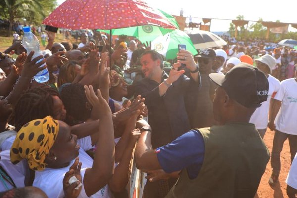 Brice Fargeon faisant des selfies à Lastoursville dimanche