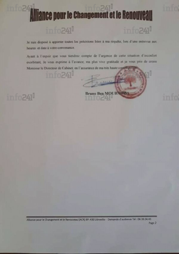 "C’est en ma qualité d’ancien Vice Premier Ministre de la République gabonaise, que je viens par la présente missive solliciter une audience afin d’exprimer un certains nombres de préoccupations" avait écrit l’ancien numéro deux du gouvernement gabonais dans sa demande d’aide à son désormais ennemi juré d’aujourdhui.