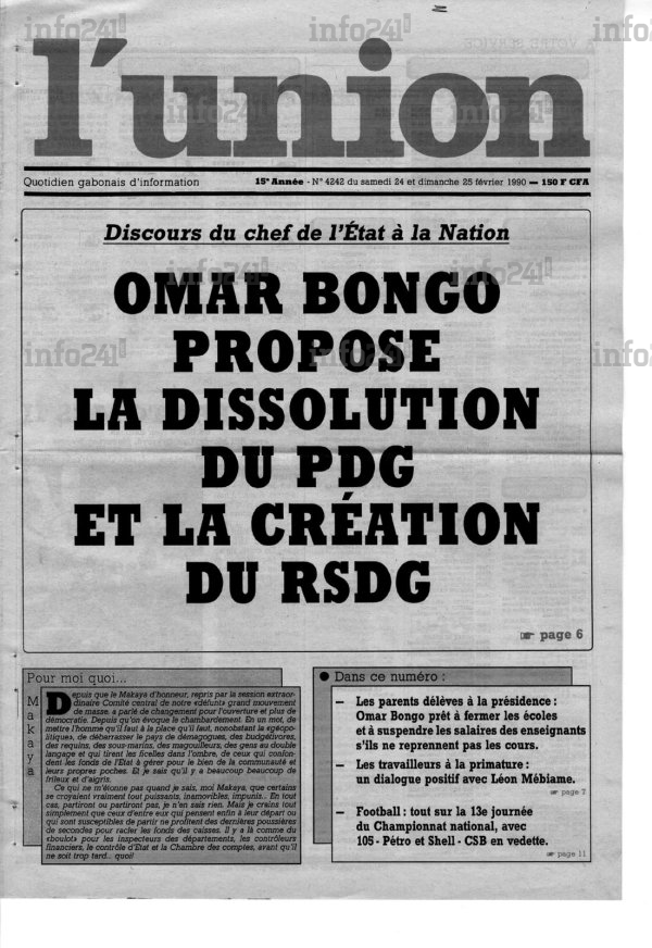 À cette époque déjà, le PDG, qui sortait à peine de 22 ans de monopartisme, avait déjà causé beaucoup de tort au Gabon malgré les dénégations d’Omar Bongo. Il faut dire que ce projet de dissolution n’a jamais vu le jour. Et pour cause, cette idée provenait en réalité de la « commission spéciale pour la Démocratie », qui l’avait émise à la suite d’âpres négociations et consultations de Gabonais souhaitant tourner la page du monopartisme. Une manœuvre habilement menée par le père du PDG, qui envisageait de créer à la place le Rassemblement social-démocrate gabonais (RSDG) et d’y rester à sa tête !!!